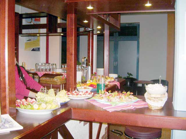 FITNESS Life-Bar erfrischen. Eine gemütliche Sitzecke lädt zum